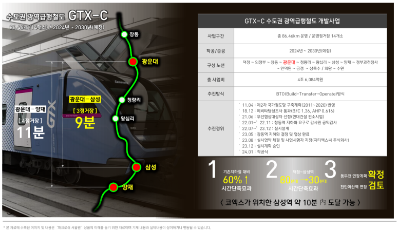 향후 GTX-C 노선 개통 시 강남 접근성이 크게 개선될 예정입니다.