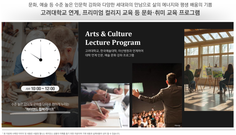 문화, 예술등 수준높은 인문학 강좌와 명상, 요가등