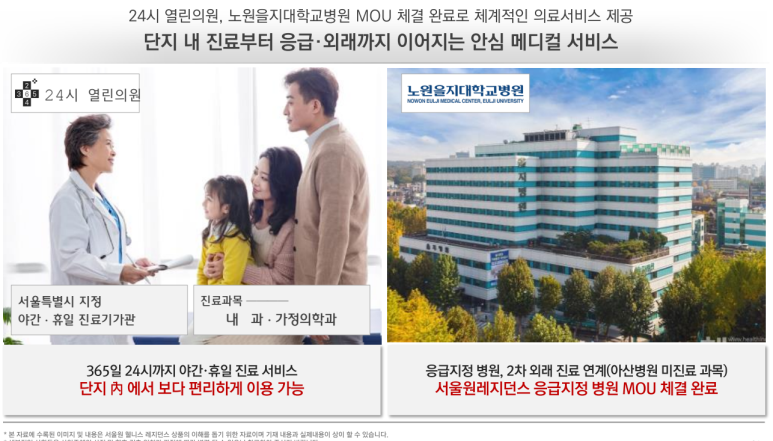 서울아산병원 및 노원을지대학교병원과 파크로쉬 서울원이